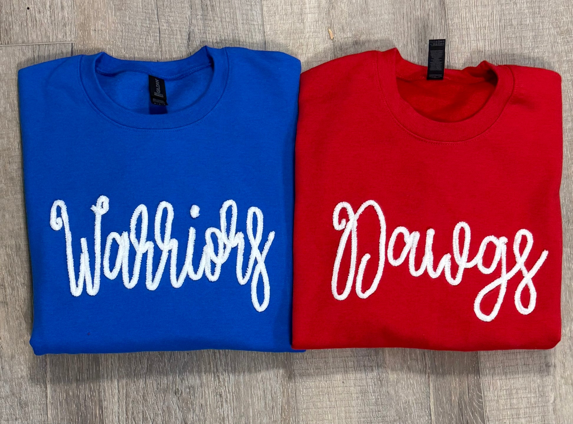 From “Dawgs” to “Warriors” — or your own one-of-a-kind creation — this sweatshirt is made just for you! 🎀